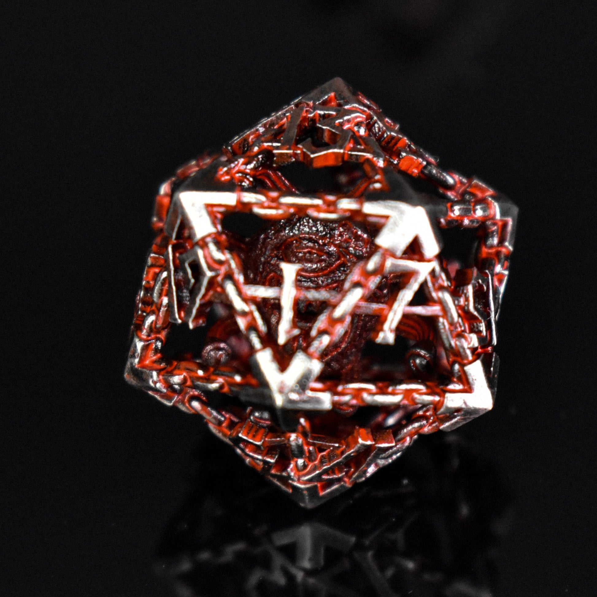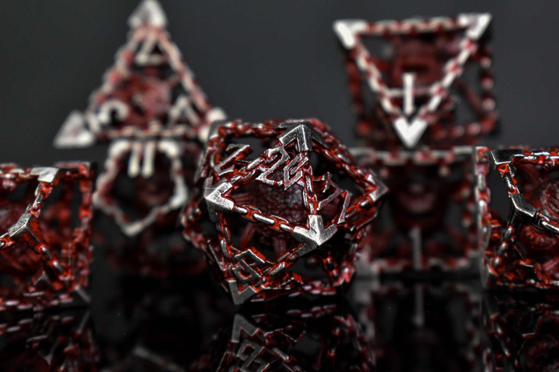 Beholder's Gates Hollow Metal Dice Set - Bloodied Silver