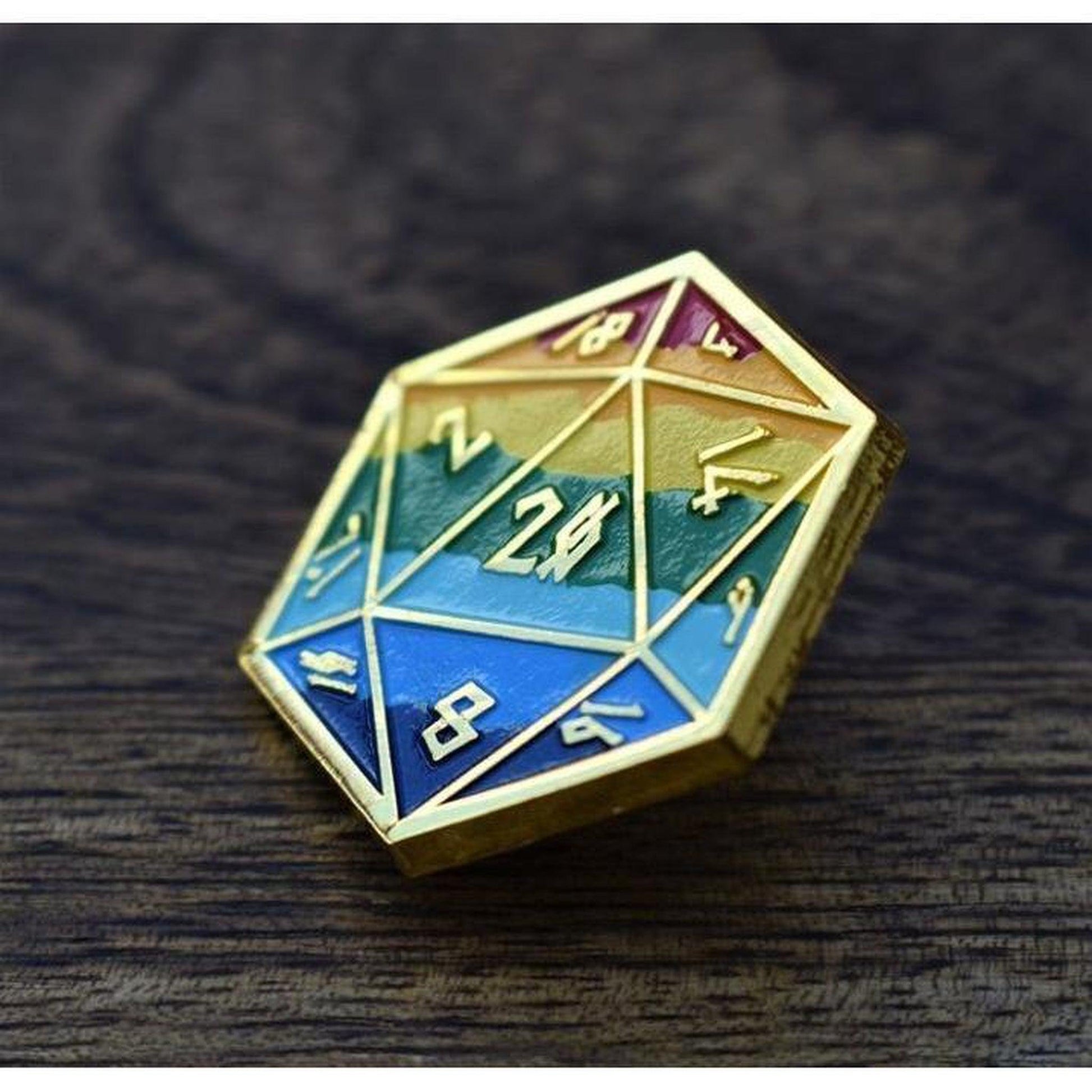 Pride and Gold Rainbow D20 Pin